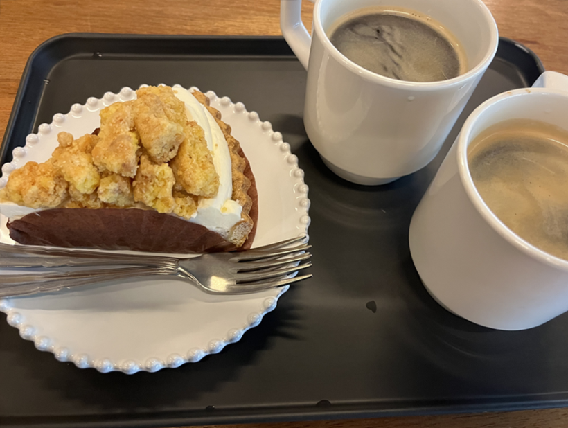 블루베리타르트는 적당히 단맛이 났고, 크림과 블루베리 그리고 위에 얹은 소보루 같은 느낌의 빵이 맛있었다.